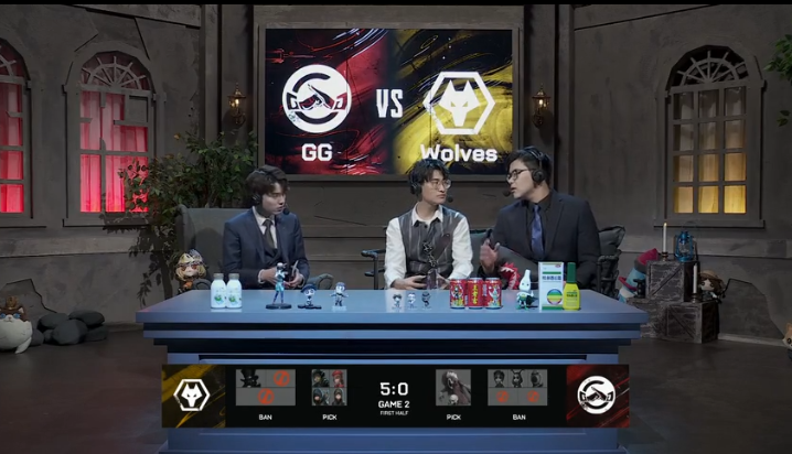 第二局Wolves战队以7:2的比分拿下胜利,现Wolves战队以大比分2:0,小比分13:4领先GG战队。